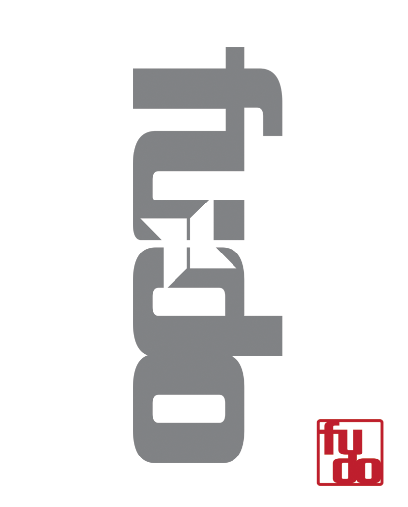 I immediately fell in love with the font, which was provided in a bold, condensed format. I chose to squash the word a little vertically and play around with the kerning, so that the four letters, which represent two separate kanji, could be joined as pairs – each pair sort of becoming a horizontal Romaji Kanji! For some other reasons, I felt that I needed to link the two pieces of type together somehow, so I chose a symbol that I had rendered in Illustrator some years ago for an old project. Bringing it across to the Fudo project made perfect sense and once I laid it over my ‘Romanji’, it didn’t take long at all for it to find its final position.